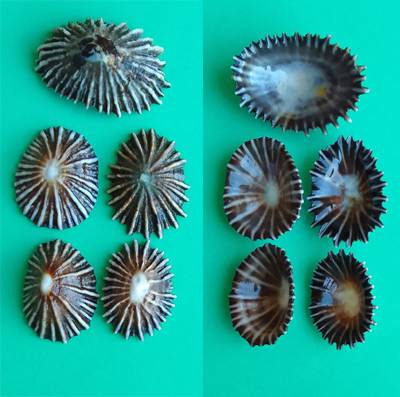 | Item | # 0004079633 | | Family | Patellidae | | Name | Siphonaria concinna - Set of 5 , Sowerby, G.B. I, 1824 |