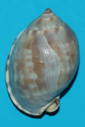 Typical dead-collected shell from Shelley Beach, Angourie NSW. The shell has a healed break on the centre dorsum and some chips on the siphon.