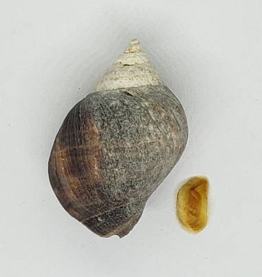NoteOne nice live-collected specimen of Acanthina monodon with its original operculum, and with the labral spine intact and sharp.