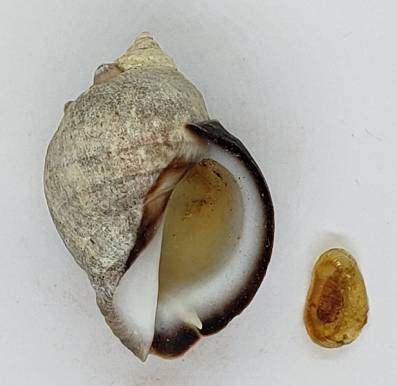NoteOne nice live-collected specimen of Acanthina monodon with its original operculum (inside), and with the labral spine intact and sharp.