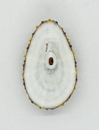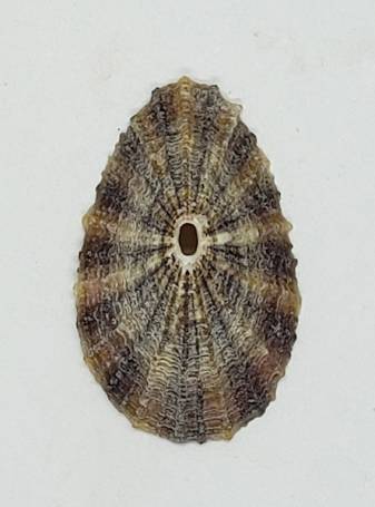 Nice specimen of Fissurella peruviana, the smallest Fissurella found in Chile. This one collected from shell grit among rocks
