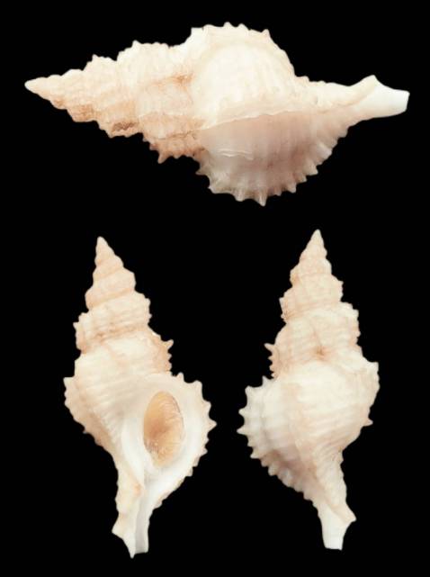 trawled from 450 M deepth in year of 2000. this spec is a sym. of cabrotrophon chunfui, axial rib is thin with scaly spines. worhty to keep for advance collector. Seabed sand pollute on surface. F++ to F+++ grade