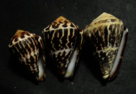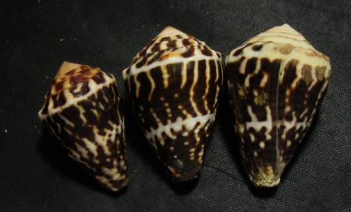 Conus chaldaeus - set of 3 , (Röding, 1798)