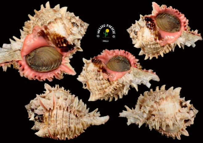 | Note | VERY RARE PINK DOMINANT COLOR!! Unusual and very rare Pink color only, a few in hundreds with this coloration and absent posterior black spot in the base side, this here is coming with some kind of brownish color form but pure of density. All of this making a strong and dominant the pink color in the outer lip, inner lip, extended columellar lip and aperture. Thick massive pink and spiny lip with the best intact conditions, the dorsal side is coming with elegant spines , spire and apex, some minor natural imperfection between micro chips and light erosion not really harming the beauty. F+++-F++. Unbelievable PINK ventral display WOOOW!!. Magnificent striking pink aperture with glossy conditions. This species lives deeper in my area and it is impossible for me to find them. Before the cold water arrives, they reproduce by gathering in groups. This species lives in deeper waters in my area. This year, I was fortunate enough to find some specimens in incredible conditions, which is unusual at these shallow depths. This species likes muddy areas and murky waters, which makes them difficult to find. Without a doubt this masterpieces are a treasure for anyone who wins it. Carefully handpicked with years of experience and cleaned preserving its natural parts. It is much more impressive in your hands because of the details that you can't see in the photos. Super high selection in situ with the best exceptional conditions you can get for this extraordinary and seldom seen species, choose your favorite in this great auction. For any MURICIDAE lovers of aesthetics and advancer collectors. Found buried in granulate thick sand between muddy stones with oysters, chamas and mussels about 6m- 7m deep. Barra de Navidad, Jalisco, Mexico. December 2025. Value for this absent black posterior spot, coming with brown, making a dominant pink coloration: 70-80 euros. Good luck and Happy shelling!!! MEXICO PACIFIC |