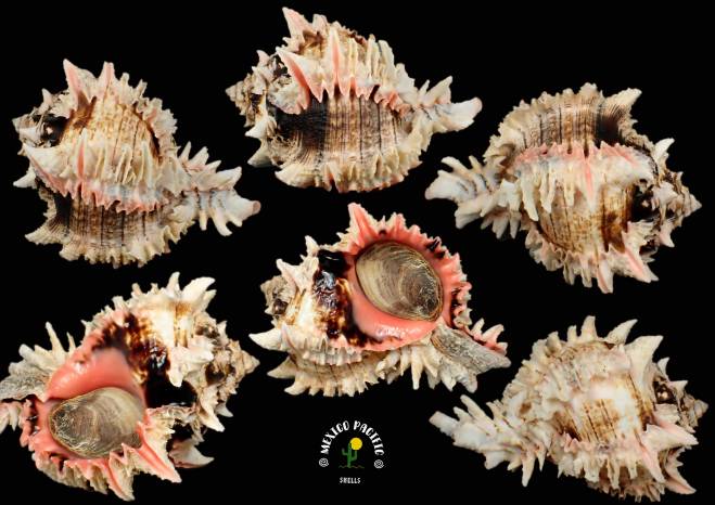 | Note | BLACK BROWN SPECIAL COLOR WOOOOW!! First time I can offer this kind of really big black-brown spot on the dorsal part of the lip making a great effect. This special coloration is only there , the rest of the shell is coming normal and with some king of erosion in one part and micro natural imperfections, not harming the beauty. Intact lip, apex and siphon. Superb dark colors and the most beautiful pink aperture. F+++-F++. Unbelievable PINK ventral display WOOOW!!. Magnificent striking pink aperture with glossy conditions combined with the classic black large spot on the posterior side. This species lives deeper in my area and it is impossible for me to find them. Before the cold water arrives, they reproduce by gathering in groups. This species lives in deeper waters in my area. This year, I was fortunate enough to find some specimens in incredible conditions, which is unusual at these shallow depths. This species likes muddy areas and murky waters, which makes them difficult to find. Without a doubt this masterpieces are a treasure for anyone who wins it. Carefully handpicked with years of experience and cleaned preserving its natural parts. It is much more impressive in your hands because of the details that you can't see in the photos. Super high selection in situ with the best exceptional conditions you can get for this extraordinary and seldom seen species, choose your favorite in this great auction. For any MURICIDAE lovers of aesthetics and advancer collectors. Found buried in granulate thick sand between muddy stones with oysters, chamas and mussels about 6m- 7m deep. Barra de Navidad, Jalisco, Mexico. December 2025. Value for this unusual large black-brown spot near lip-spire side and impressive pink elegant aperture : 60-70 euros. Good luck and Happy shelling!!! MEXICO PACIFIC |