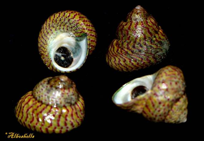 Note16586 Gibbula divaricata (Linnaeus, 1758) 17,5-16,18 mm Spain TROCHIDAE F+++, W/O, Set x 4 items, from 0,5-1 m, Malaga 7/2016