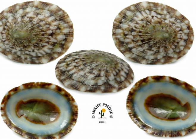 | Note | LOTTIIDAE - Lottia stanfordiana (S. S. Berry, 1957). SPECIAL WHITE COLOR FORM!! This elegant unique piece presents a crazy dense and dominant white coloration like a tents between the brown-green coloration. Really irresistible. The shell shows a radiant glossy bluish pristine coloration with a tiny brown ring color all around the lip in the ventral side , the middle large dark brown spot is just exquisite. Light usual dorsal erosion and tiny natural imperfections coming as always for this rough species not really detracting the beauty. F++-F+++ This is the highest selected and seldom seen conditions you can get for the species with extremely strong dominant fully white pattern spots. Apparently feeding on the marine soup that comes and goes with the currents, waves and seaweeds attached to the smooth stones, this species lives where the waves break and in the intertidal zone. Really hard to remove from stones without braking them. Found attached to the rocks with green and brown algae at extremely low tide. North Playa La Calechosa, Bahia de Cuastecomates, Jalisco, Mexico. March 2026. Value for this rare white dense unique patten: 20-25 euro. Good luck and Happy shelling!!! MEXICO PACIFIC |
